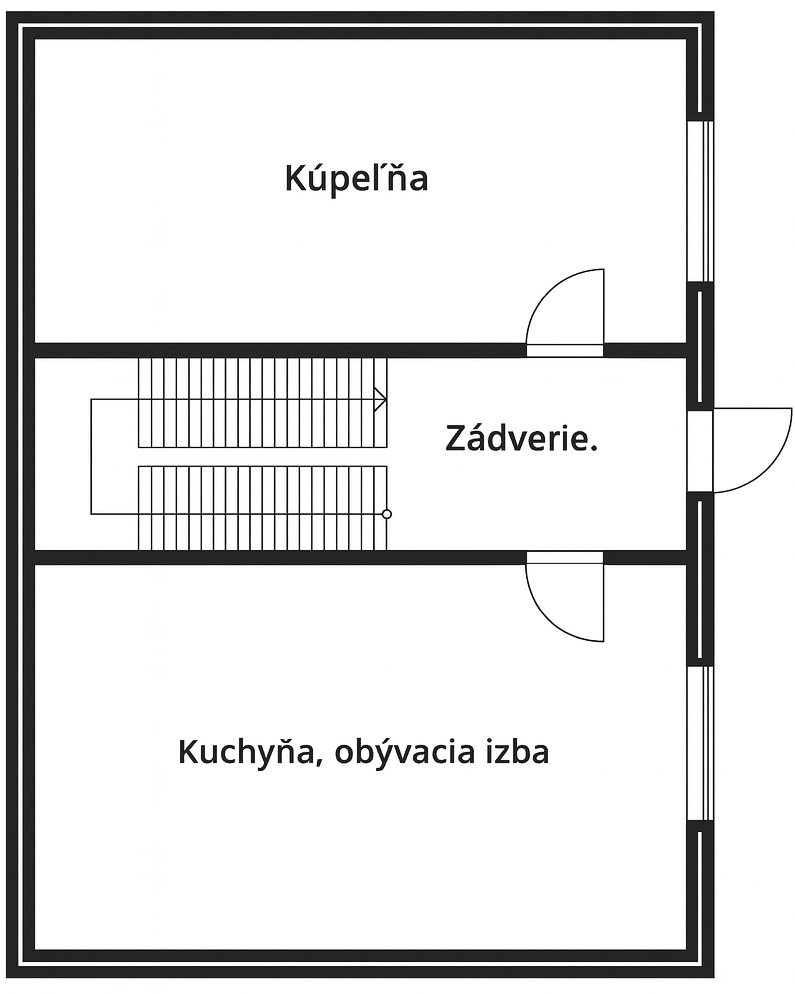 Przemie: vstupna chodba, kuchyňa s obývacou izbou. kúpeľňa s tech. miestnosťou