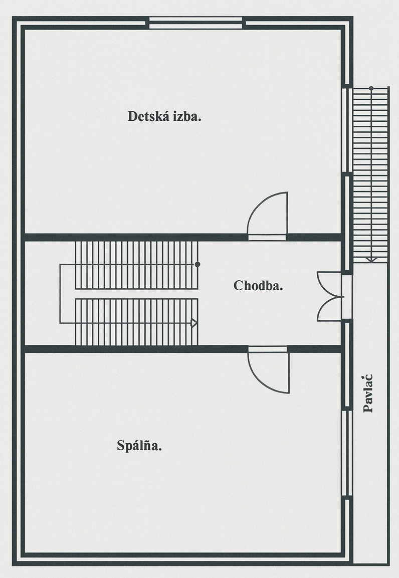 Prvé poschodie: detská izba prípadne hosťovská izba a spálňa..