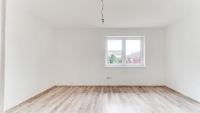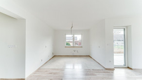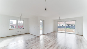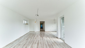 Priestranná obývacia izba spojená s kuchyňou s priamym vstupom na terasu