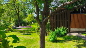v záhrade množstvo ovocných stromov, kríkov, vinič a okrasné rastliny