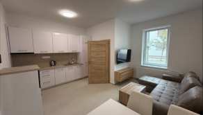 Byt je plne vybavený a zariadený novým nábytkom a spotrebičmi – k dispozícii je kuchynská linka so vstavanými spotrebičmi, práčka, chladnička, umývačka riadu, TV a ďalšie.