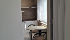 Dispozícia bytu : vstupná chodba, 2 samostatné izby (v jednej je stavaná skriňa), plne zariadená kuchyňa, kúpeľna so sprchovým kútom a práčkou.