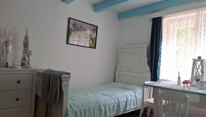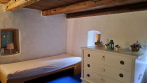 Vo všetkých izbách sú zachovené a obnovené drevenné trámové stropy. Prispôsobený nábytok na vidiecky štýl. Všetko tu dýcha dušou minulosti.