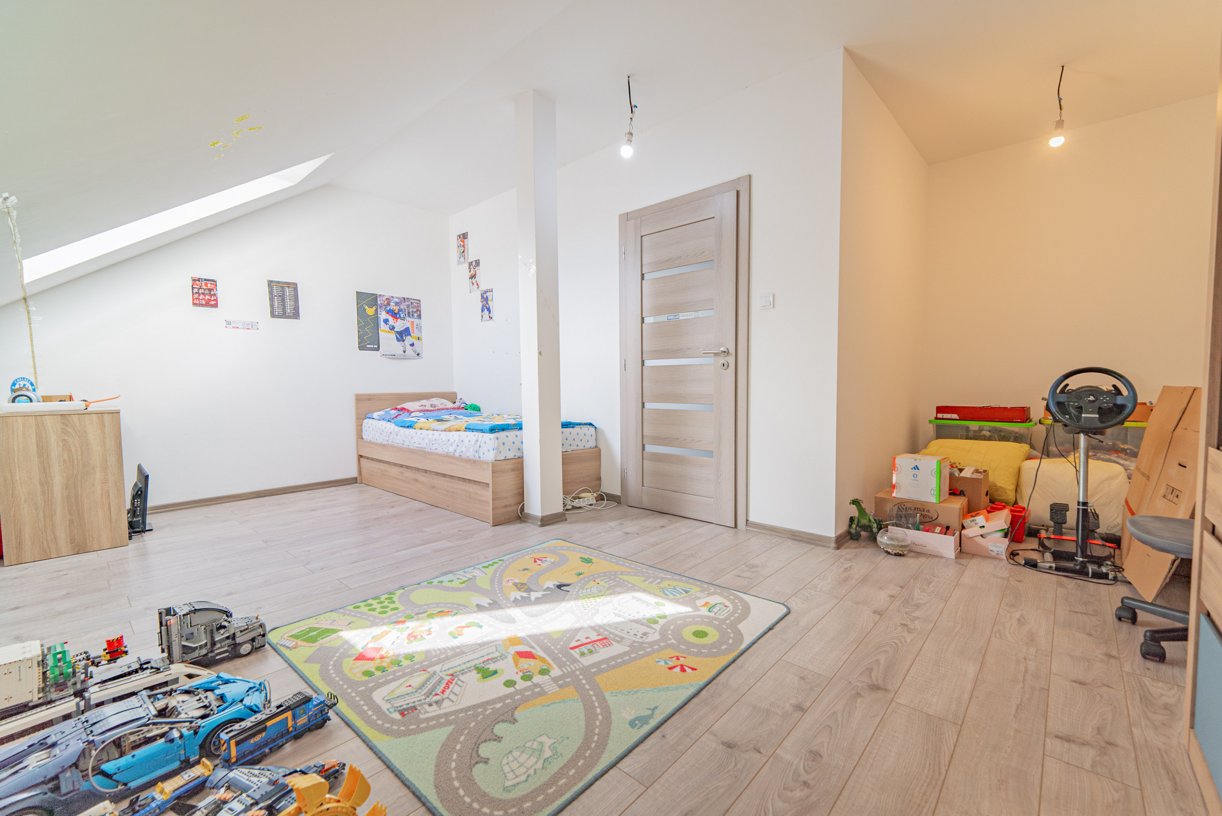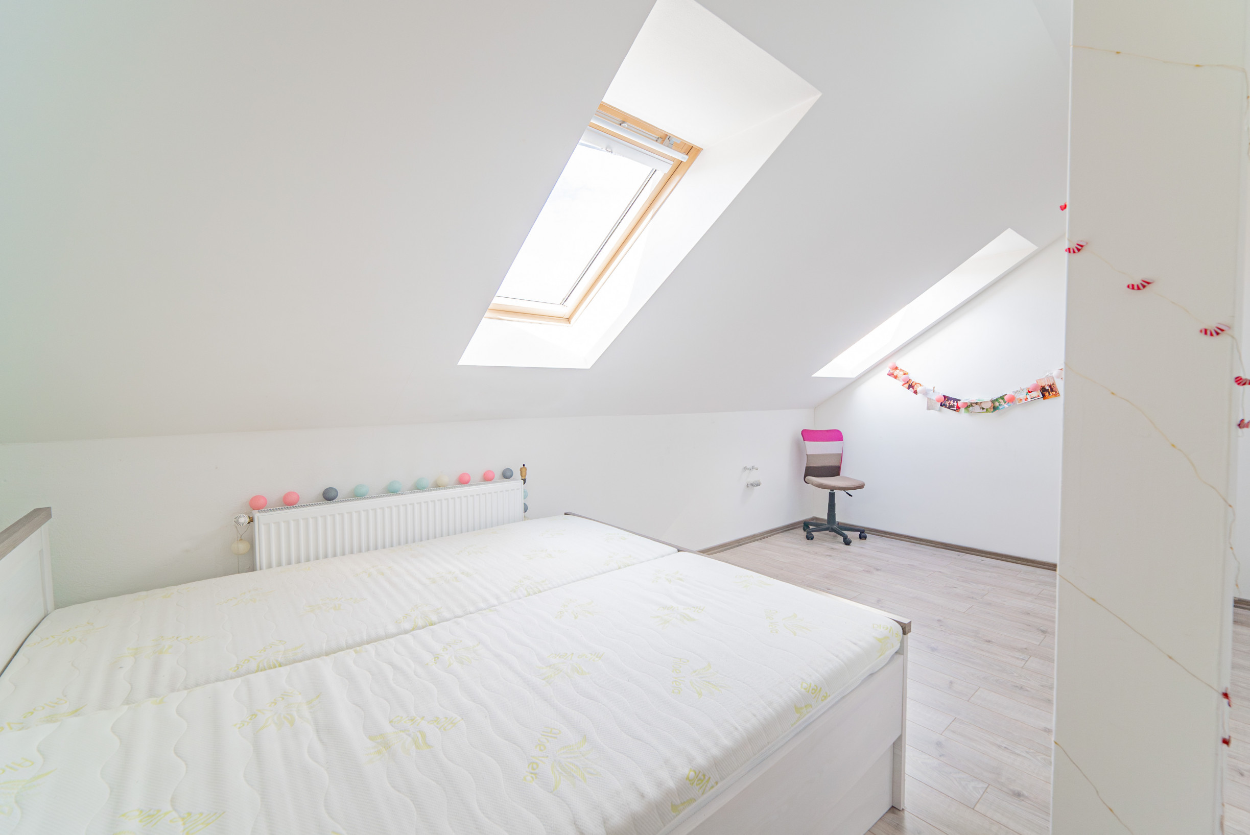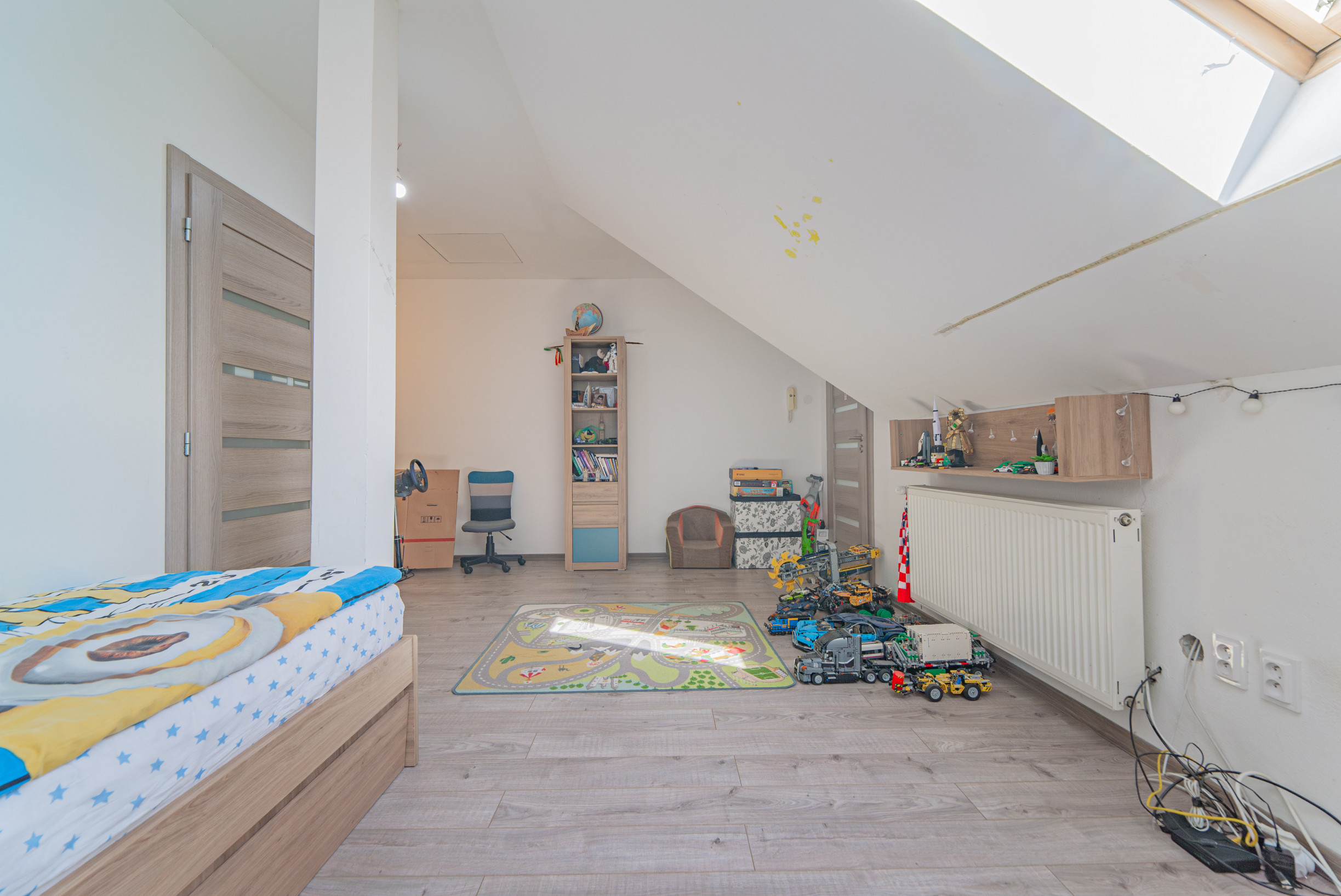 Na poschodí sú situované tri samostatné izby ktoré slúžia ako spálňe a druhá kúpeľňa.