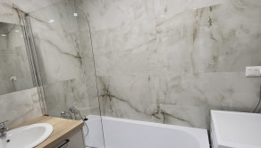 Byt má zasklený balkón, samostatnú kúpeľňu a WC. Súčasťou je moderná kuchyňa so spotrebičmi, práčka, nábytok, internet, malá pivnica a spoločná kočíkareň.
