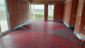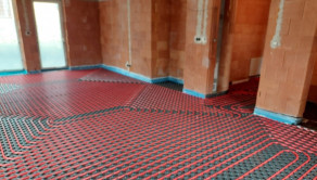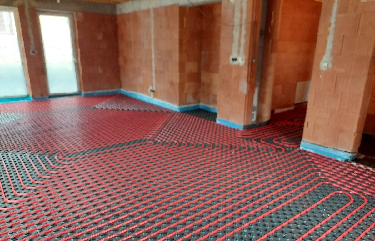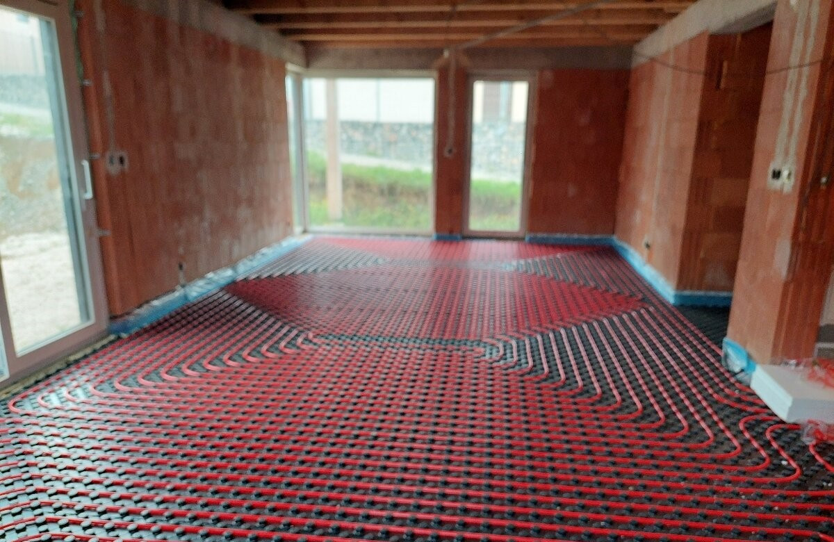 Hydraulické podlahové kúrenie napojené na dva distribútory