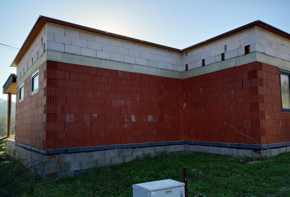 Dom je postavený z presných tehlových blokov s rovnou strechou a disponuje kvalitne zrealizovanými inštaláciami: