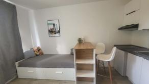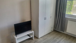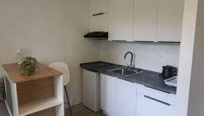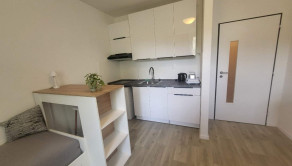 Dispozícia: izba s kuchynskou linkou, kúpeľňa so sprchovým kútom, umývadlom, WC a práčkou. Byt je svetlý, vybavený novým zariadením a pripravený na nasťahovanie.