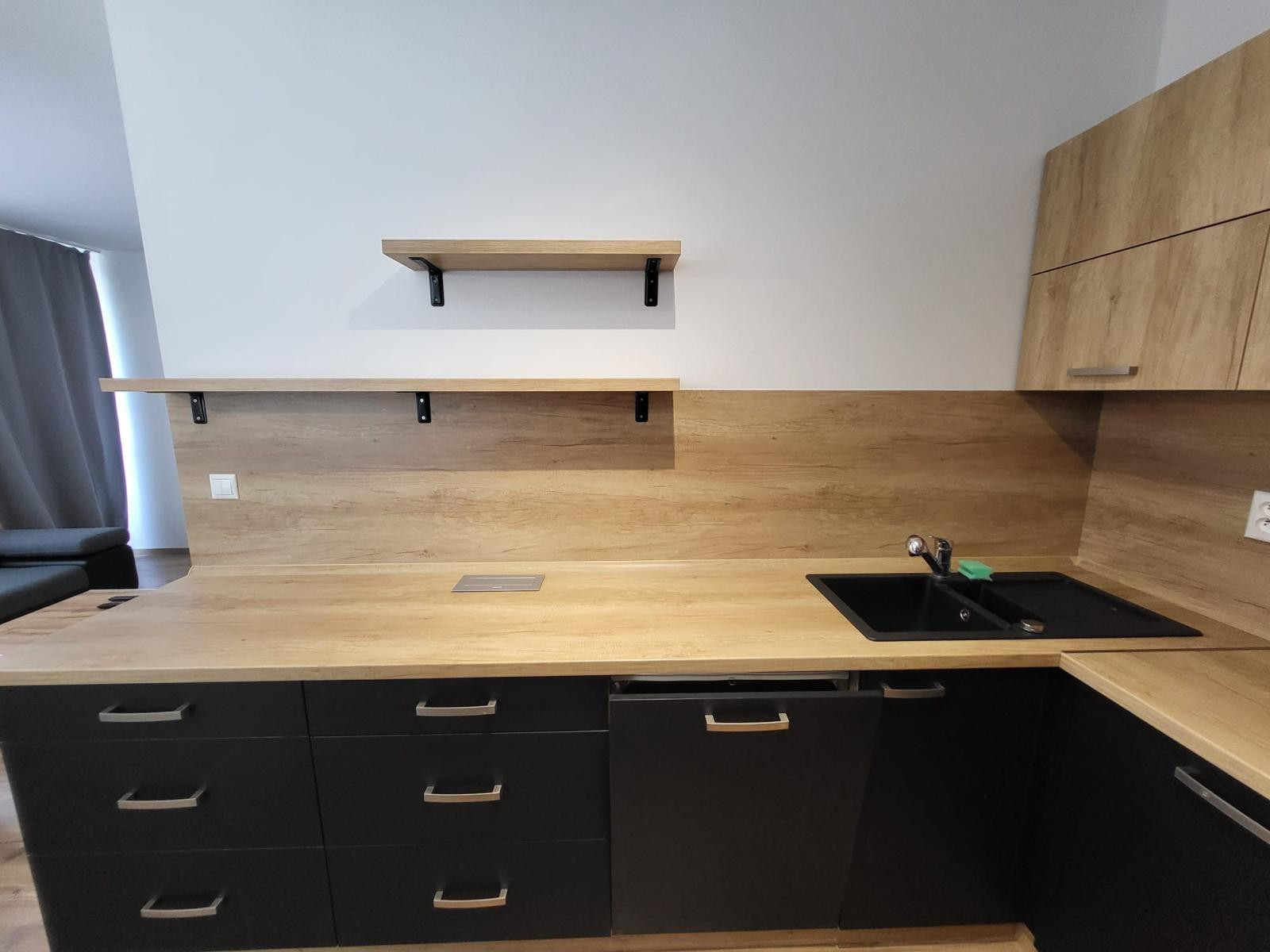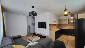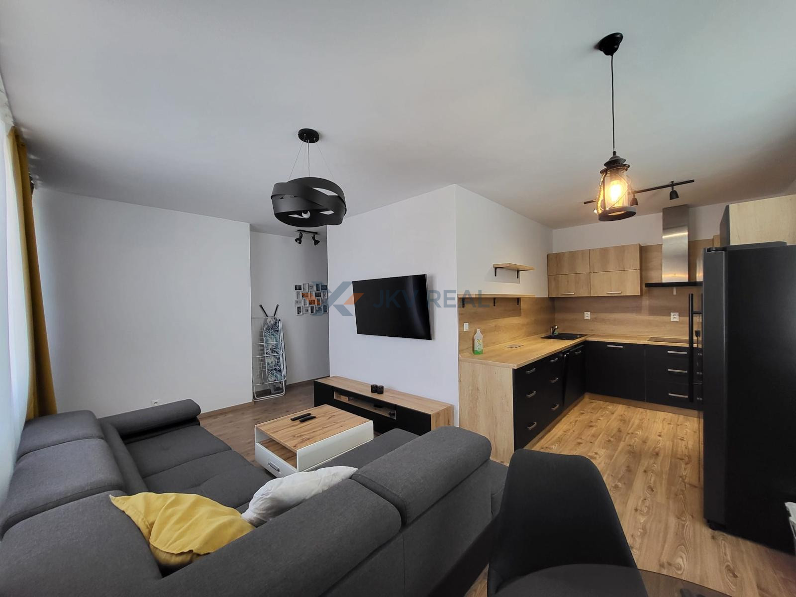 Byt pozostáva z obývačky spojenej s kuchyňou, samostatnej spálne, kúpeľne a samostatnej toalety. Byt sa prenajíma kompletne zariadený vkusným nábytkom a modernými spotrebičmi vrátane umývačky riadu. V chodbe aj spáľni sa nachádza veľké množstvo úložných priestorov. Súčasťou bytu je tiež balkón s plochou 7m2. K bytu prislúchajú aj 2 vokajšie parkovacie miesta. V byte nie sú povolené zvieratá.