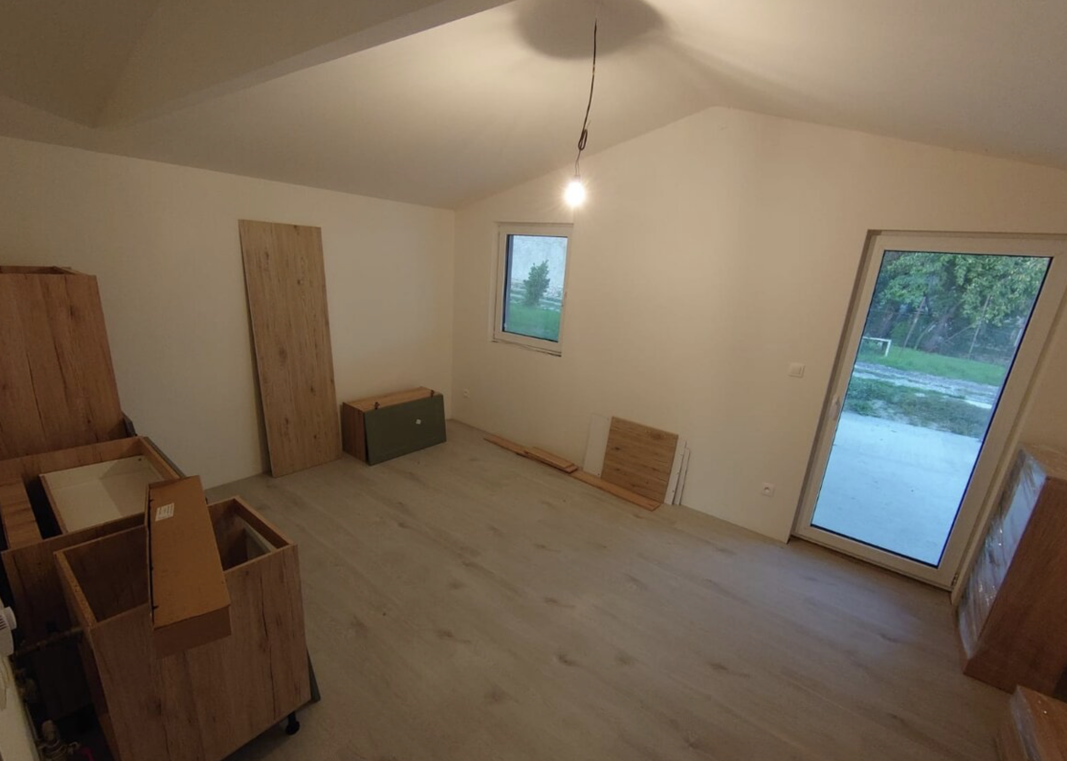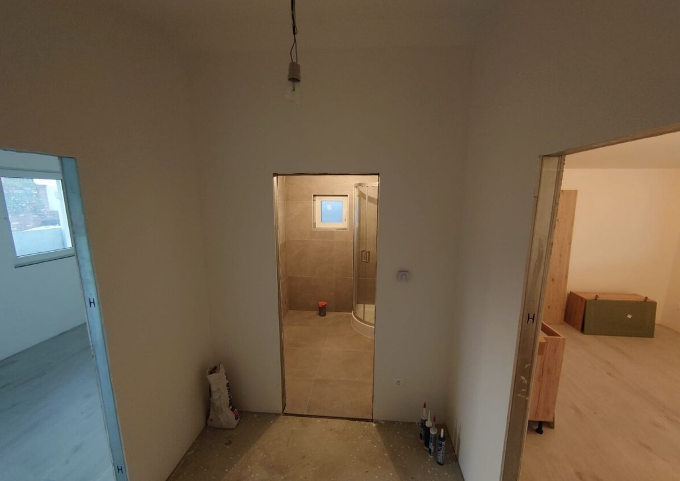 plastové okná, v obývačke a izbách plávajúca podlaha,v kúpeľni sprchový kút, umývadlo.
