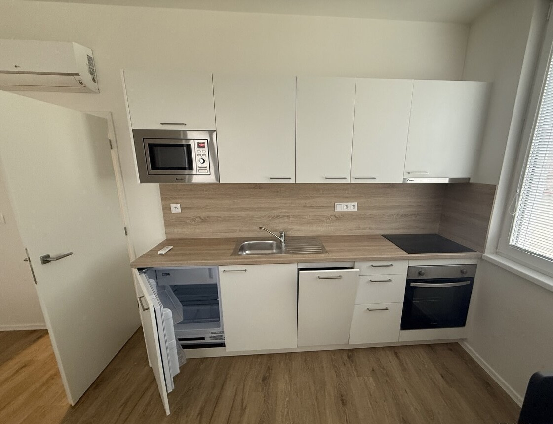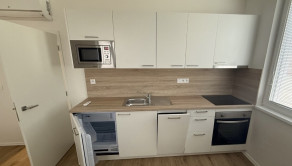 - kuchynskú linku so vstavanými spotrebičmi (rúra, indukčná varná doska, umývačka riadu, chladnička s mrazničkou)