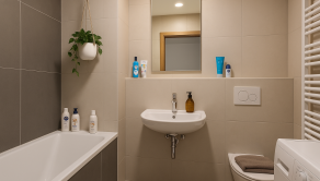 Byt je dispozične riešený s dôrazom na funkčnosť – priestranná obývacia izba s kuchynským kútom, moderná kúpeľňa a vstupná chodba s úložným priestorom.