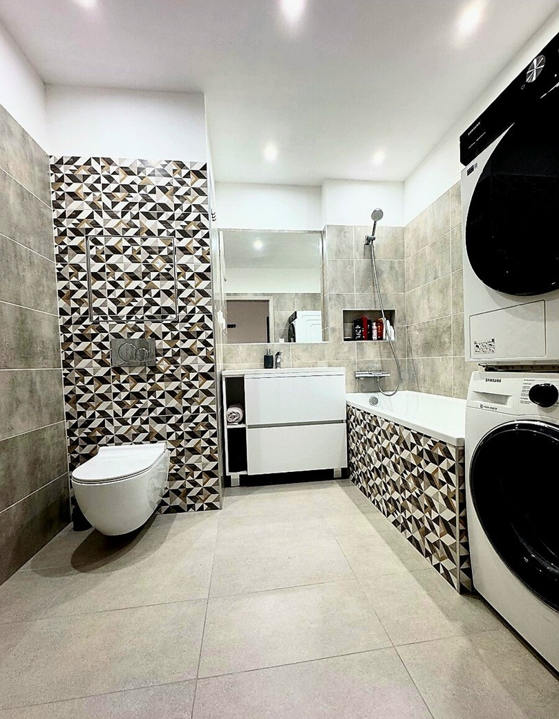 - Kúpeľňa s vaňou a WC, pračkou a sušičkou