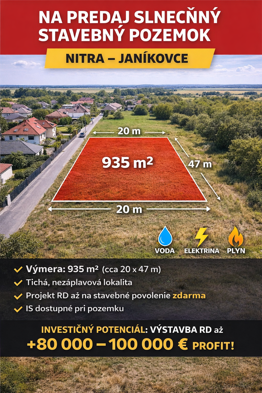 Stavebný pozemok v Janíkovciach, 149.000€, 935m2, 20x47m