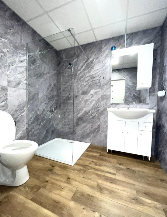 Byt pozostáva zo vstupnej chodby s veľkou šatníkovou skriňou, kúpeľne so sprchovým kútom, a veľkej izby s kuchynským kútom televíznou stenou a manželskou postelou.