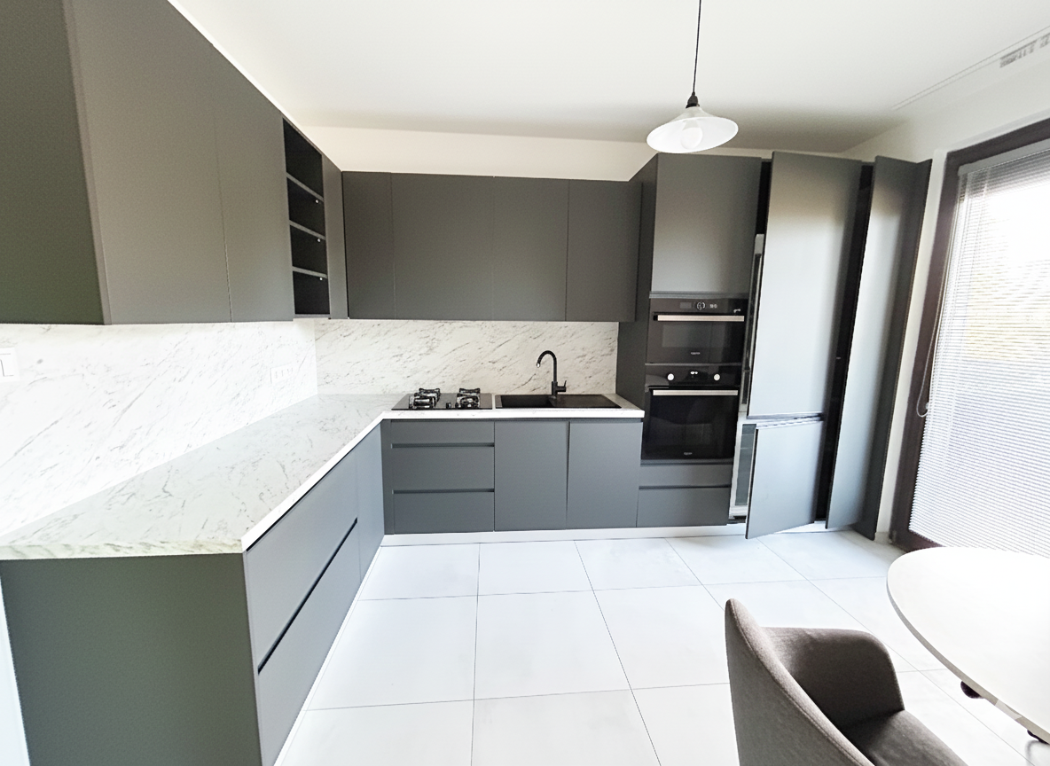 dizajnová kuchynská linka so zabudovanými spotrebičmi, ktorá spríjemní každodenné varenie