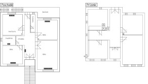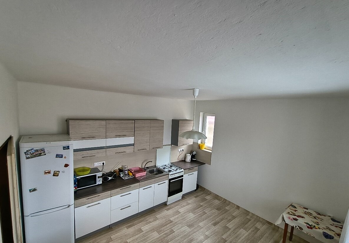 Dom je dispozične riešený nasledovne: v prízemí sú pivničné a skladové priestory, na podlaží je obytná zóna. Vstup do domu je z prednej a zadnej časti na chodbu, odkiaľ vedie priestor do obytnej zóny aj do pivnice a komory. Obytný priestor má 3 izby, kuchyňu , špajzu, balkon a kúpeľňu s WC. Prízemie má 4 miestnosti vrátane pivnice, kotolne, komory a chodby. Vykurovanie je plynové , dom je vhodný na fotovoltiku a alternatívne "Zelené" vykurovanie v budúcnosti. Aj keď je dom obytný, vyžaduje si menšiu rekonštrukciu.