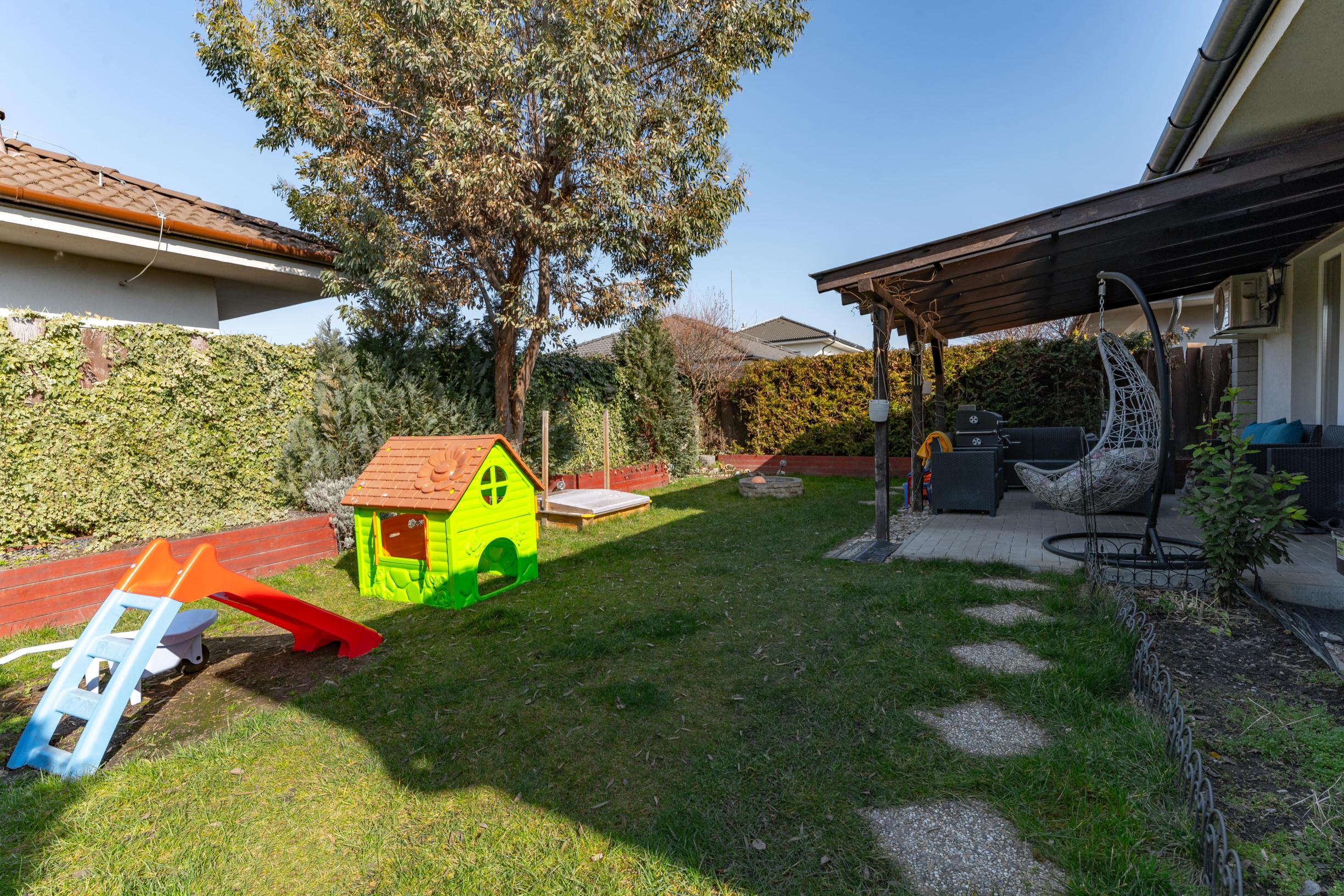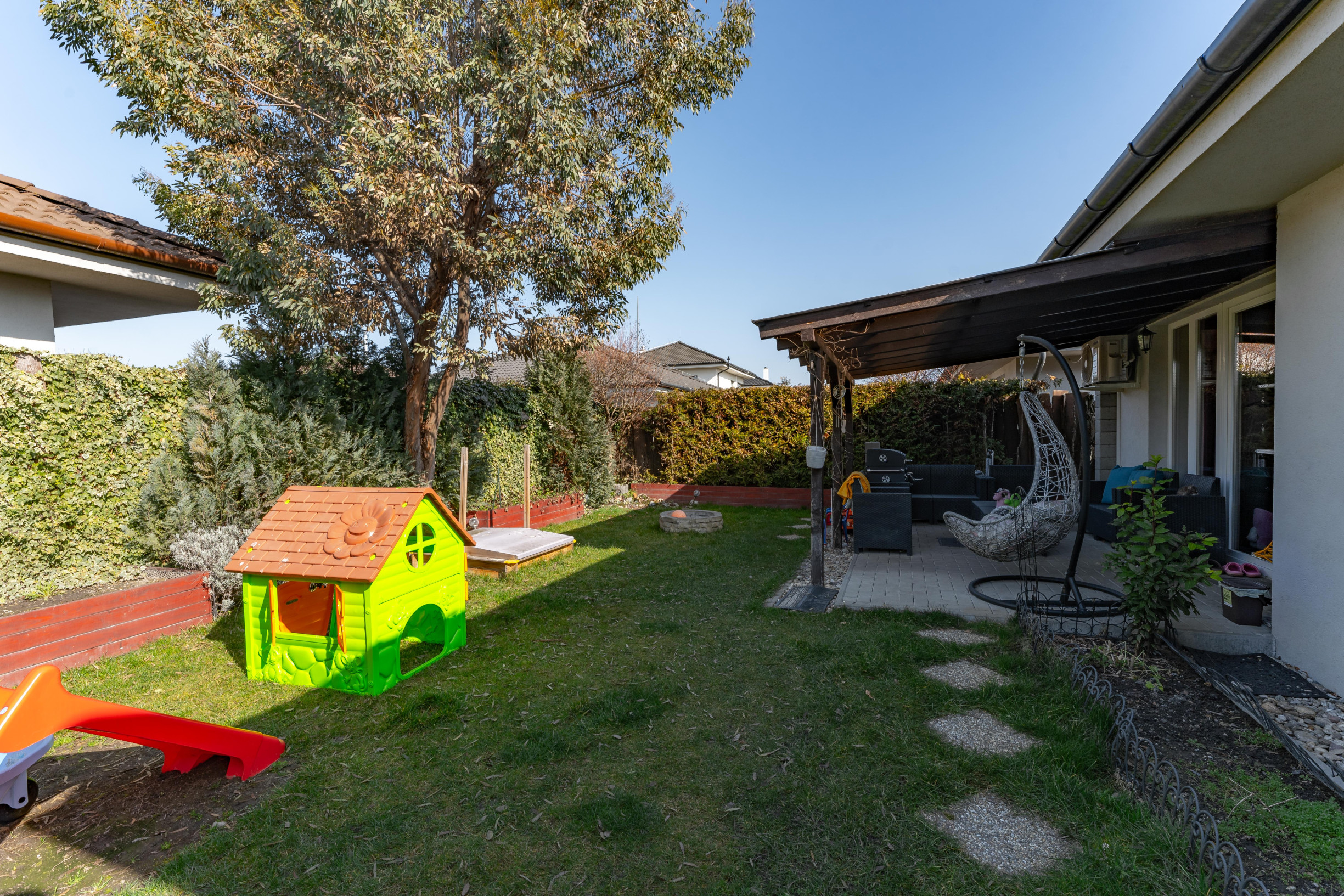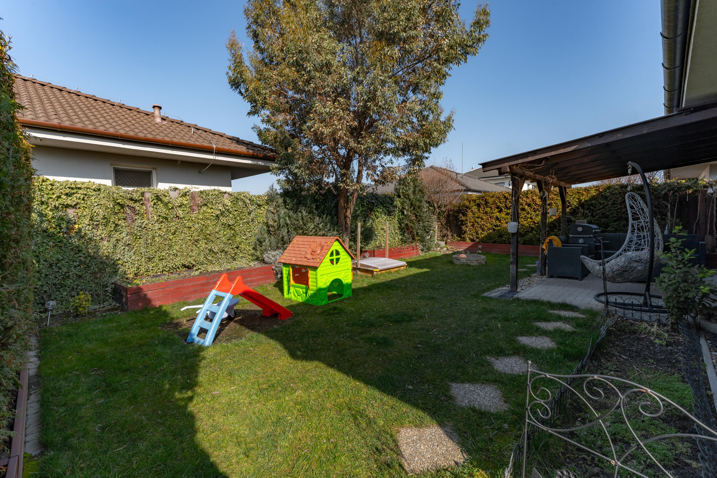 Nehnuteľnosť bola kolaudovaná v roku 2017 a vďaka praktickej dispozícii, kompletnej zariadenosti a príjemnému exteriéru predstavuje ideálnu voľbu pre rodinu, ktorá hľadá pohodlné bývanie pripravené na okamžité nasťahovanie.
