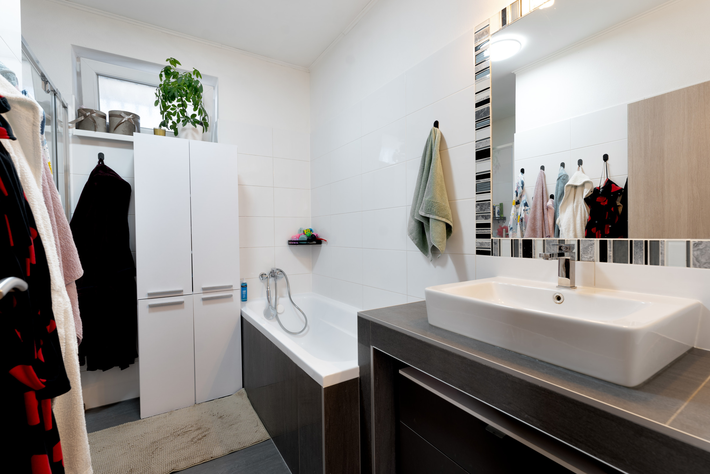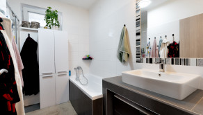 Kúpeľňa je prakticky riešená a doplnená o samostatné WC, čo zvyšuje komfort každodenného bývania. Veľkou výhodou je, že nový majiteľ má k dispozicií klasickú vaňu ale aj sprchový kúť. V dome sa nachádza aj technická miestnosť, ktorá poskytuje ďalší úložný priestor a praktické zázemie domácnosti.