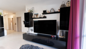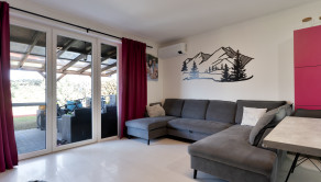 Obývacia časť ponúka príjemný priestor na oddych a spoločné chvíle s rodinou. Počas letných mesiacov zabezpečuje komfort klimatizácia umiestnená v obývacej izbe, ktorá dokáže efektívne vychladiť celý dom.