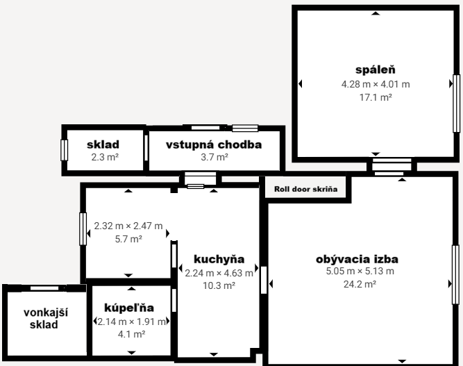 Dom pozostáva z dvoch obytných miestností a príslušenstva: spálňa, pracovňa prepojená s kuchyňou, samostatná kuchyňa, veľká obývacia izba a kompletne prerobená kúpeľňa. Súčasťou je aj nevyužité podkrovie, ktoré ponúka ďalší priestor na rozšírenie. Vďaka rozľahlému pozemku (viac ako 6 árov) s prístupom z viacerých strán a kompletnému oploteniu máte priestor na nadstavbu, prístavbu, alebo využitie na podnikanie a firemné účely. K domu patrí aj murovaný záhradný sklad.