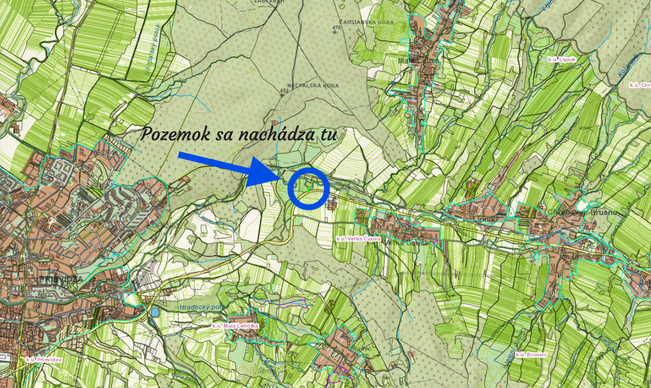 Výmera: 632 m² (Parcela registra E) LV 978, k.ú. Veľká Čausa