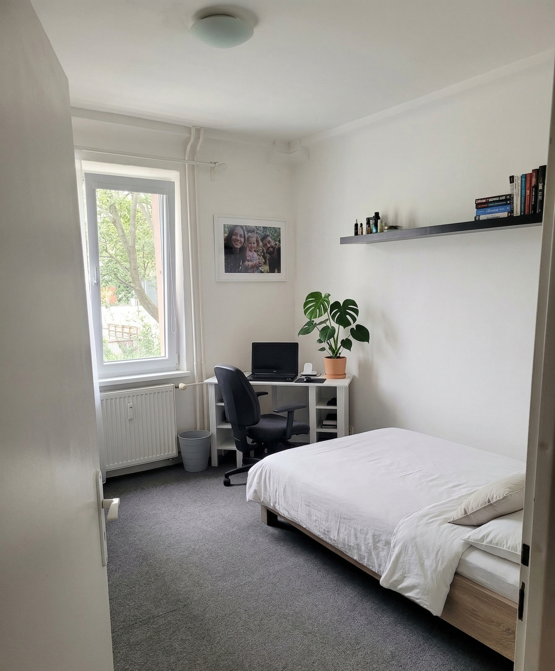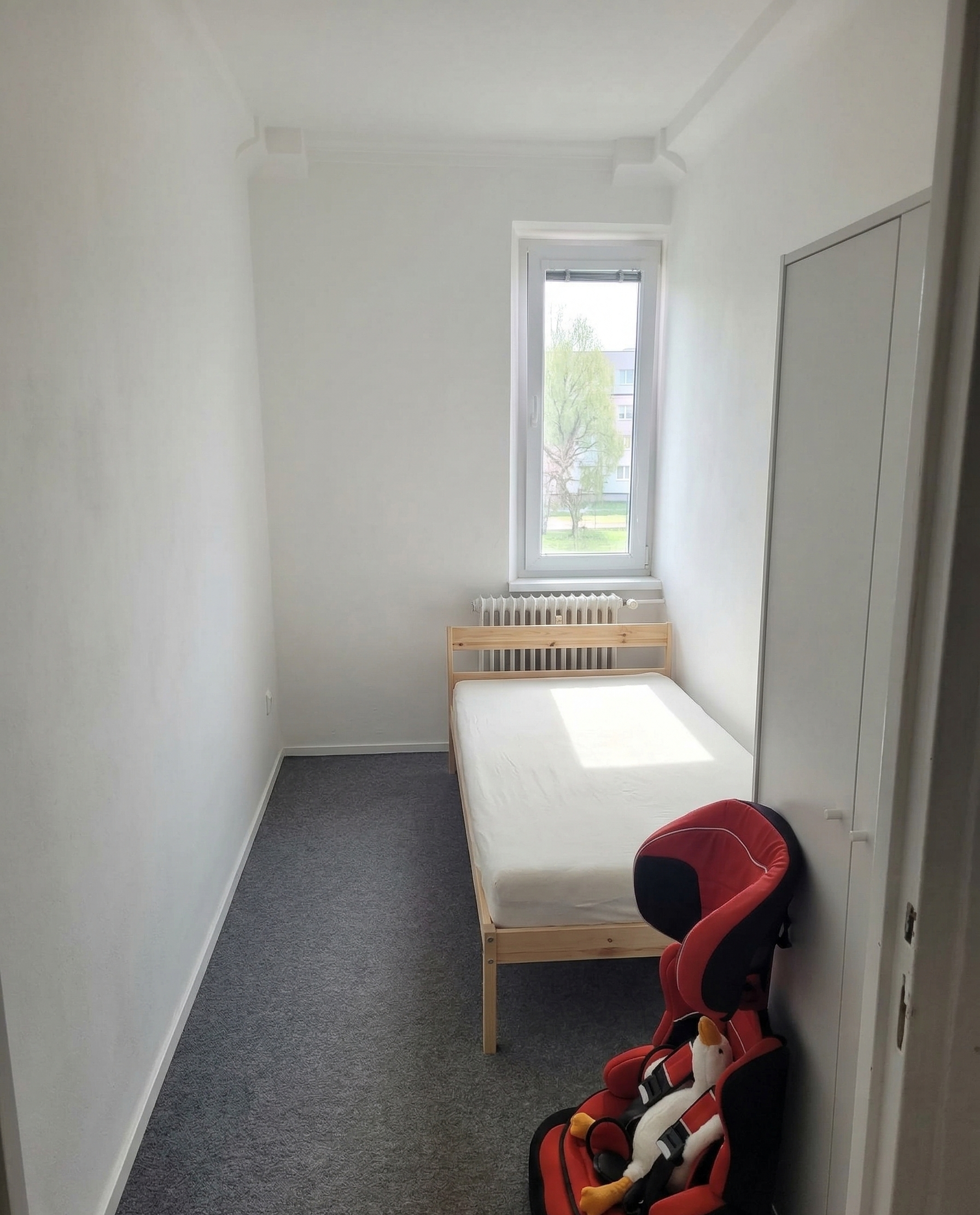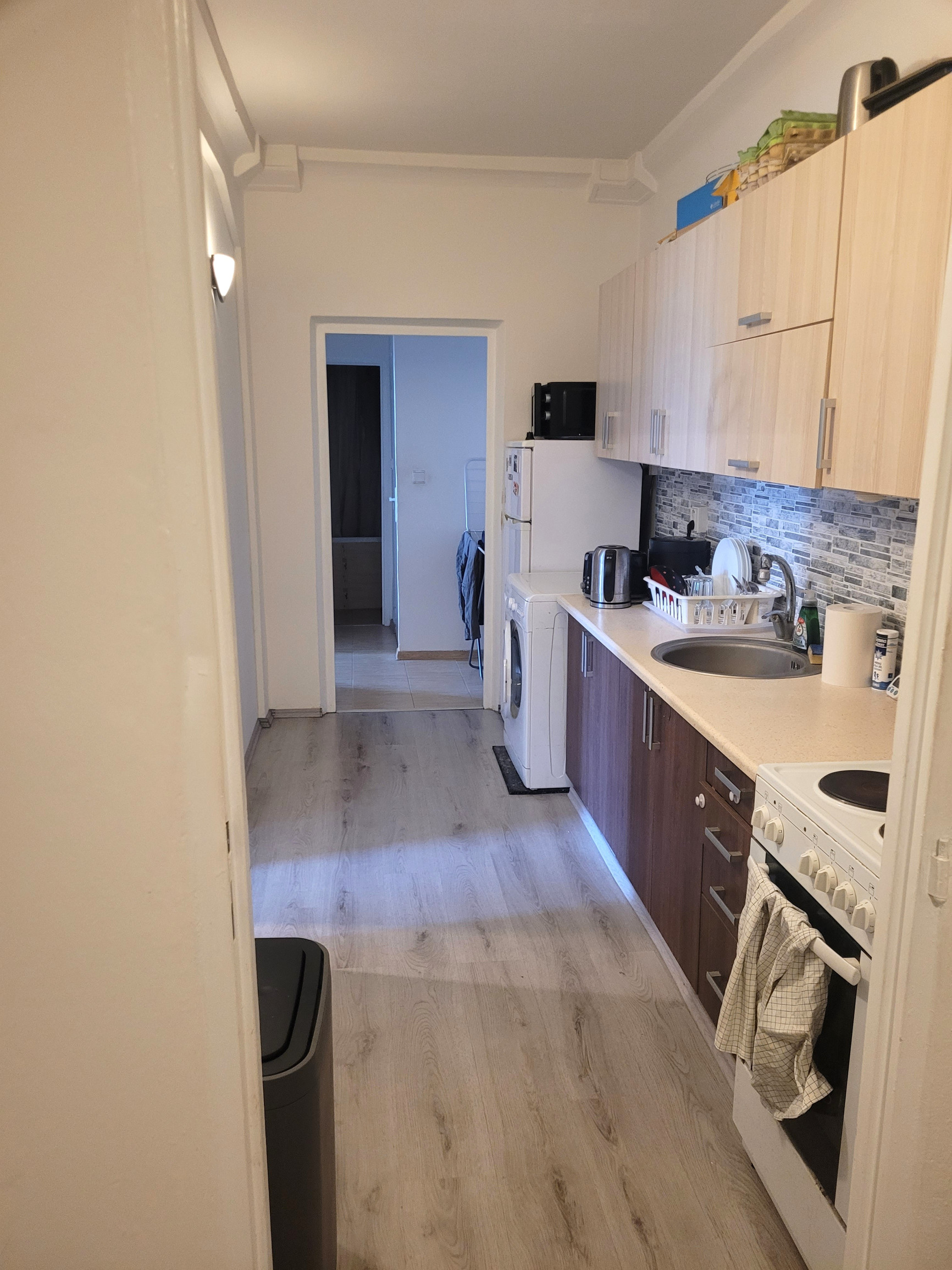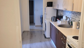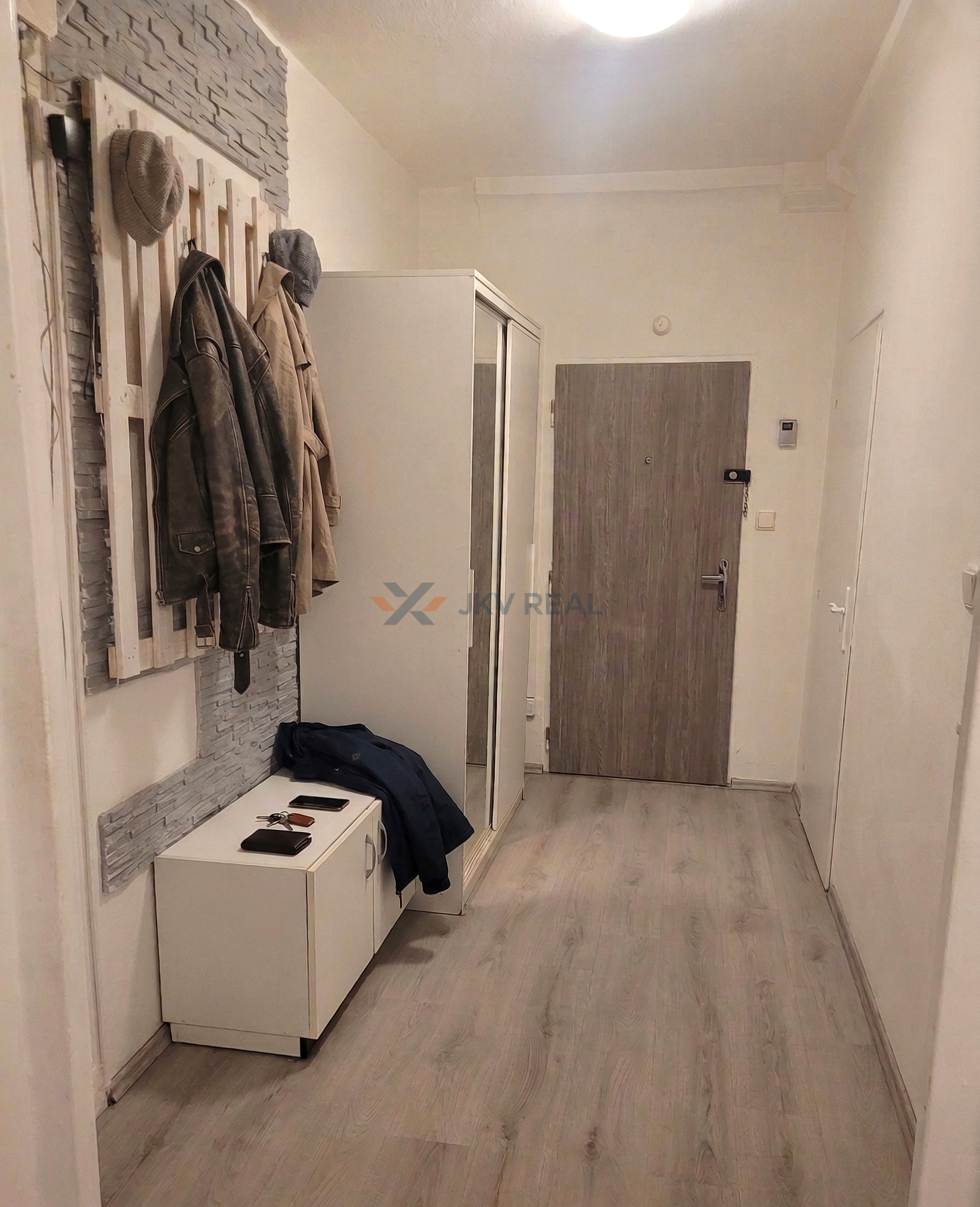 Byt má vstupnú chodbu, z ktorej sa vchádza do dvoch samostatných menších izieb, kuchyňu so vstavanou práčkou, dve väčšie izby, kúpeľňu s vaňou a samostatné WC. Všetky okná sú orientované na východ s výhľadom na upravené detské ihrisko a pokojnú ulicu.