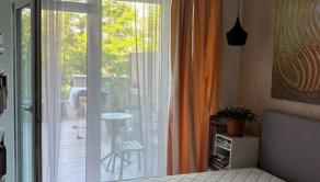 Spálňa disponuje vlastným vstupom na terasu a nadštandardným šatníkom. Byt ďalej zahŕňa aj samostatnú kúpeľňu.