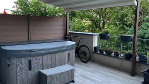 Obývacia časť pozostáva z kuchyne vybavenej zabudovanou chladničkou s mrazničkou, elektrickou rúrou a umývačkou riadu, a zároveň z dennej obývacej zóny s internetovým pripojením cez Slovak Telekom a výstupom na priestrannú terasu s vírivkou.