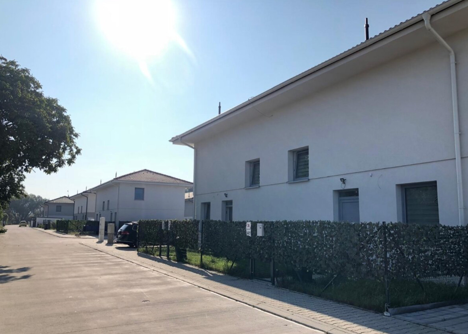Pod každým domom sa nachádza pozemok s výmerou 300 m² a k dispozícii sú dve parkovacie miesta.