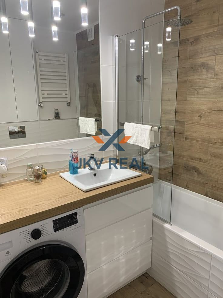 Apartmán o celkovej výmere 66 m² (vrátane lodžie) sa nachádza na 3. poschodí. Bytová časť má 45 m² a pozostáva z otvorenej obývačky s kuchyňou, spálne, kúpeľne so sprchovým kútom, samostatného WC a vstupnej haly. Všetok nábytok bol vyrobený na mieru, s dôrazom na praktickosť a estetiku.