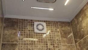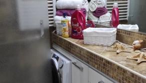 → Kúpeľňa s murovaným jadrom, sprchovacím kútom, umývadlom a práčkou so sušičkou