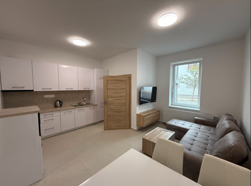 Byt je plne vybavený a zariadený novým nábytkom a spotrebičmi – k dispozícii je kuchynská linka so vstavanými spotrebičmi, práčka, chladnička, umývačka riadu, TV a ďalšie.