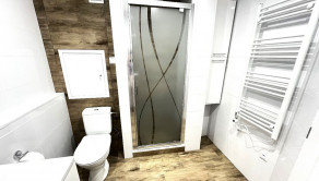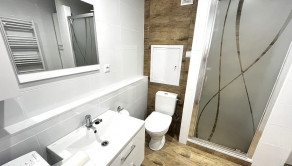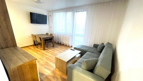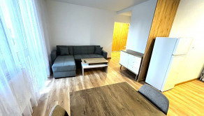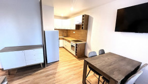 Byt prešiel rozsiahlou rekonštrukciou a je kompletne zariadený novým nábytkom. Všetko, čo potrebujete, je už pripravené, vrátane kvalitných spotrebičov ako chladnička, práčka, umývačka riadu a elektrická rúra. V obývačke nájdete sedaciu súpravu s televíziou a v spálni je pre vás pripravená posteľ s nočnými stolíkmi a praktická vstavaná skriňa. Kúpeľňa je vybavená moderným a elegantným sprchovacím kútom.