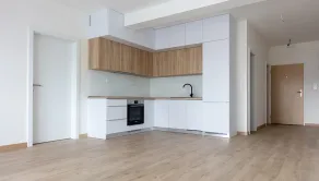 Byt je nezariadený, no vybavený kvalitnou kuchynskou linkou so spotrebičmi: