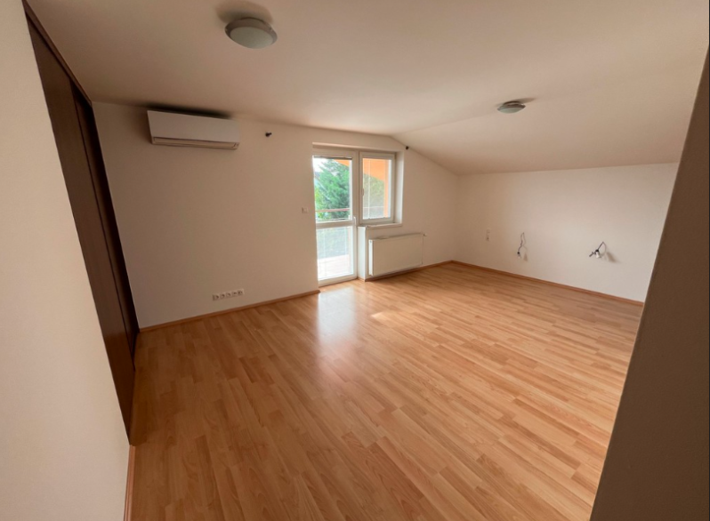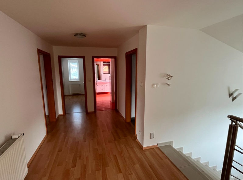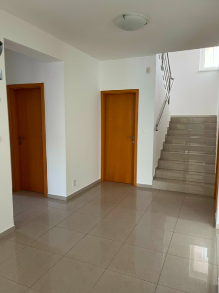 Prvé poschodie ponúka dokonalé súkromie od dennej časti domu na prízemí. Nachádzajú sa tu štyri priestranné spálne, samostatný šatník, veľká kúpeľňa, samostatná práčovňa s veľkým skladovým priestorom. V klimatizovanej spálni s loggiou do tichej záhrady Vás zobudí vychádzajuce slnko. Študentské izby majú vstavané skrine, jedna študentská izba má logiu s výhľadom do záhrady. Z jednej izby sa dá v prípade záujmu o dvojgeneračné bývanie, spraviť ďalšia kuchyňa.
