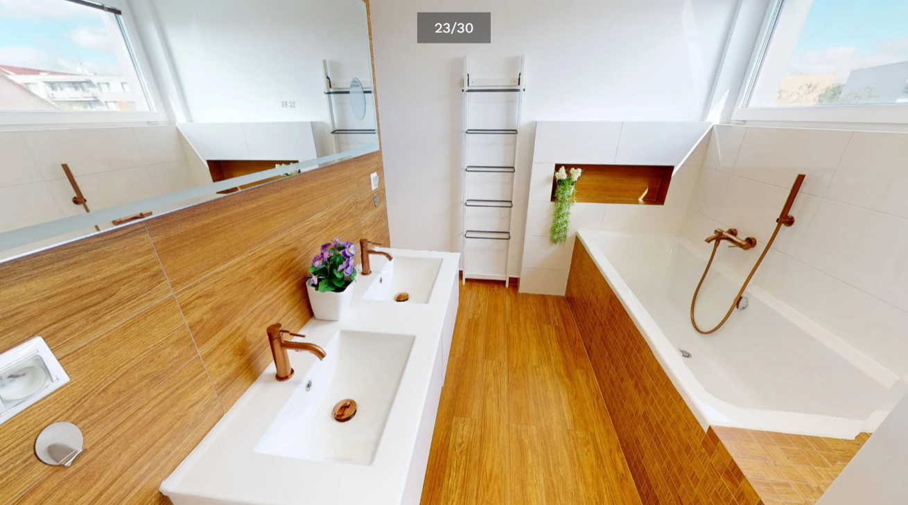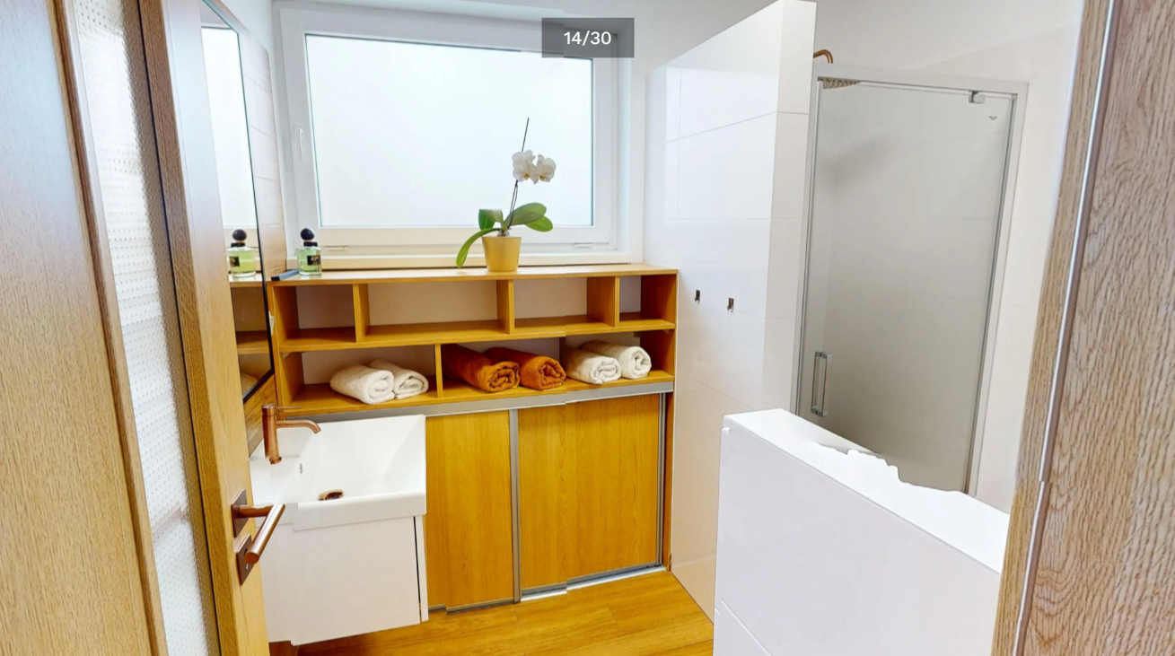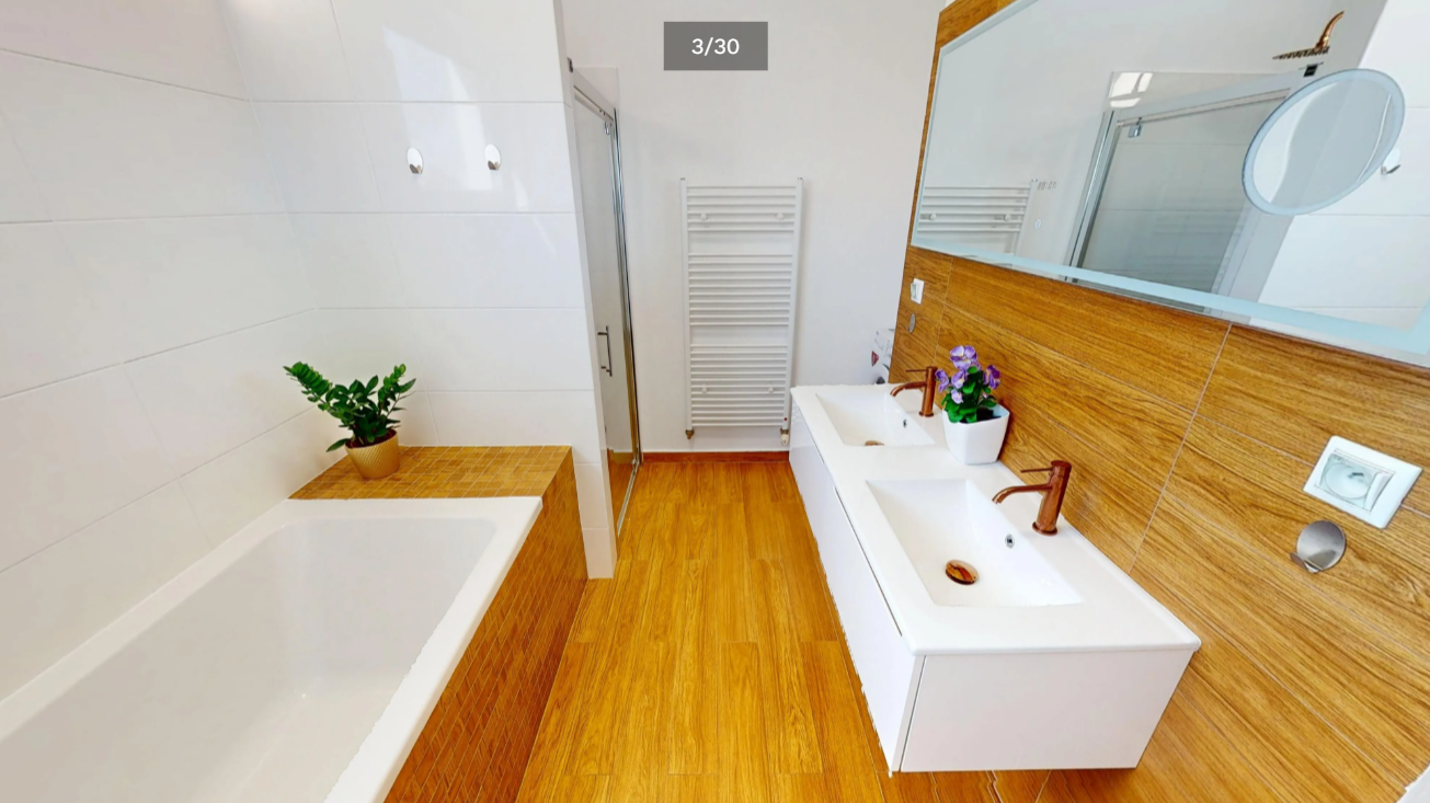 Je postavený z tehly (300.mm) a situovaný na rohu modernej radovej zástavby. Od susedného domu je oddelený 2 samostatnými stenami (2x300.mm) a zvukovou izoláciou (100.mm) Vykurovanie je zabezpečené plynovým kotlom s podlahovým kúrením a radiátormi na poschodí. Dom je vybaveny aj 3 klimatizáciami, krbom s komínom a saunou pre 3 osoby. Strecha ma dodatočnú izoláciu v podobe kameniva. Dom je napojený na optický internet prostredníctvom spol. E-net, alebo Orange. Je zabezpečený alarmom, videovrátnikom s možnosťou napojenia kamerového systému.