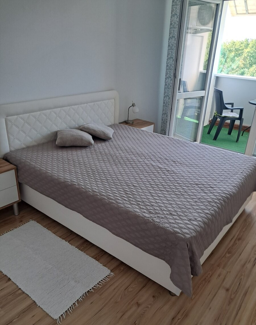 Byt sa nachádza na 4 poschodí. Súčasťou je lodžia 4m2, spálňa, obývacia izba, kuchyňa, kúpeľňa a WC samostatne. K dispozícii môže byť aj pivnica. Byt má klimatizáciu, umývačku riadu a je kompletne zariadený a vybavený. Byt je vhodný maximálne pre 2 dospelých. V byte nie sú povolené zvieratá, nesmie sa tam fajčiť.