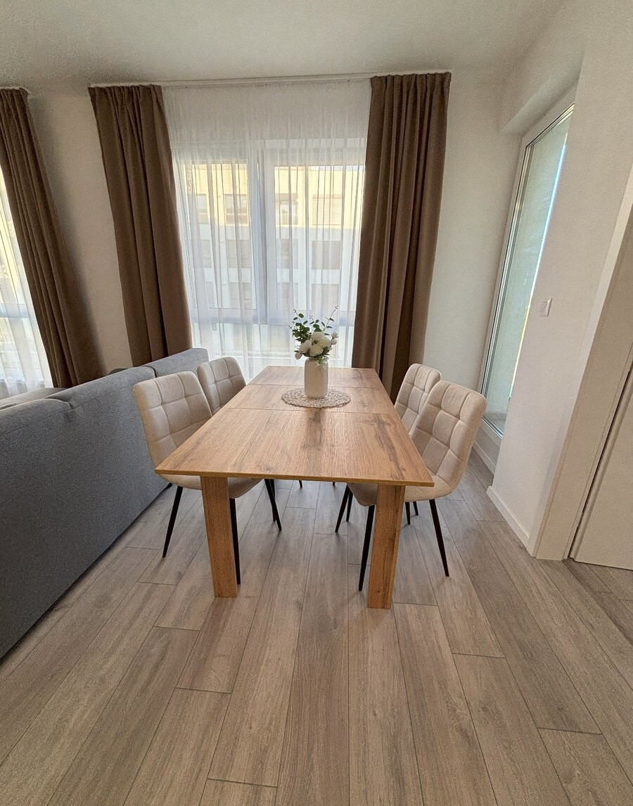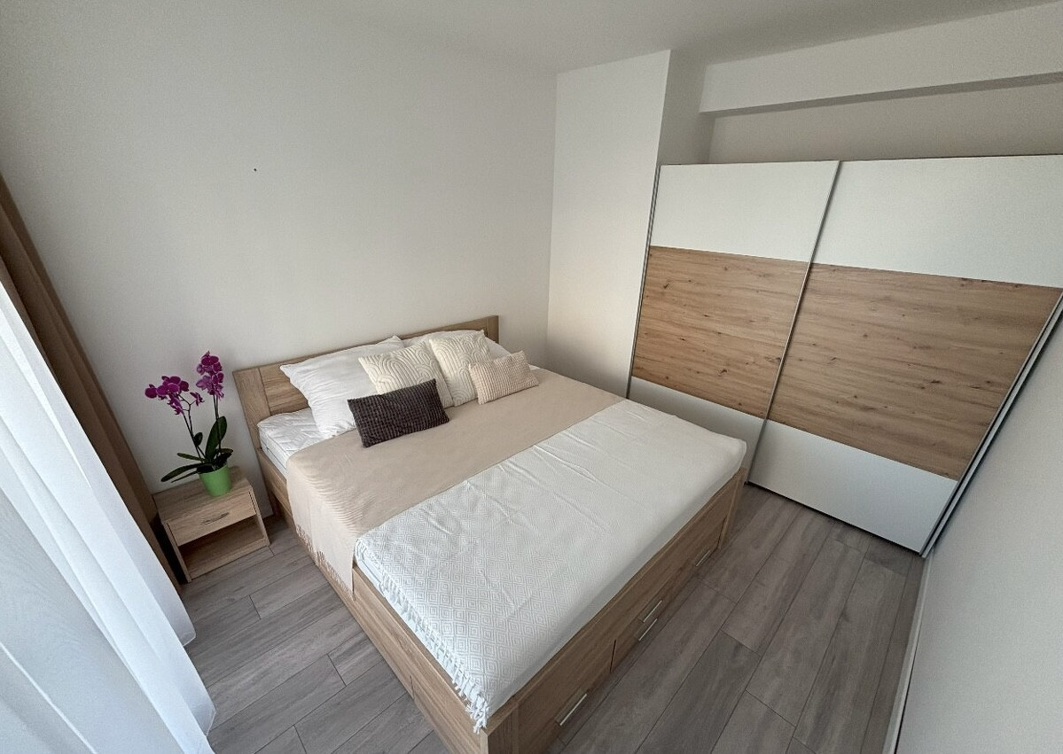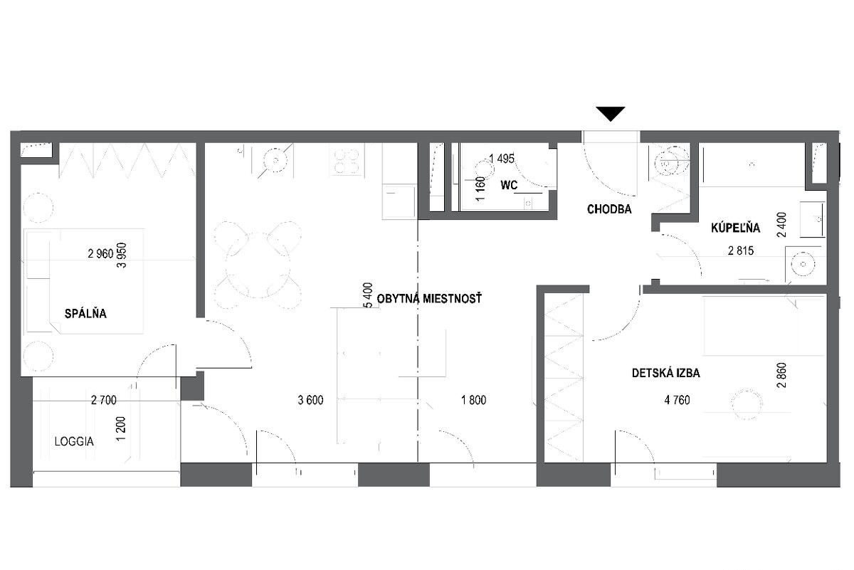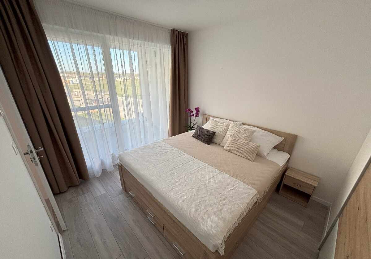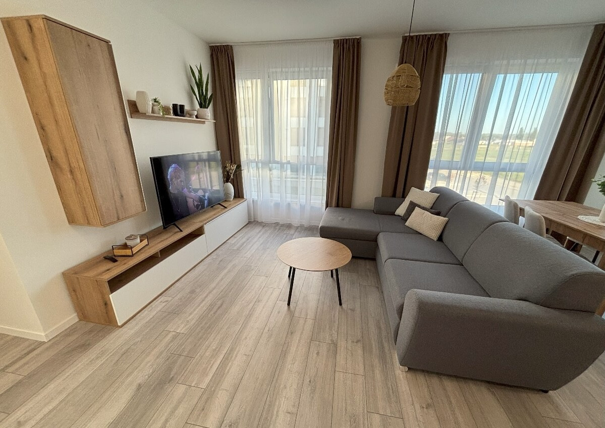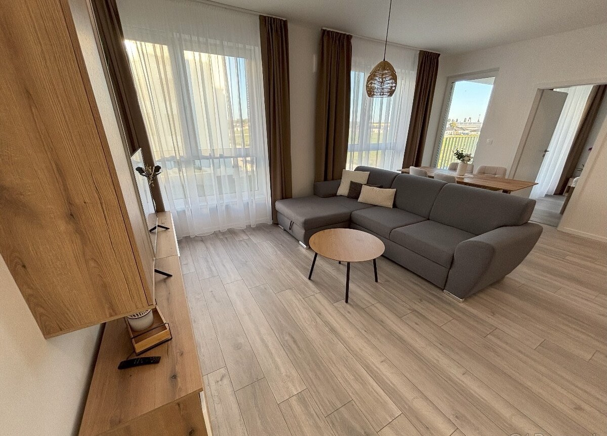 Dispozícia: vstupná chodba, obývacia izba s kuchyňou a výstupom na balkón, spálňa s výstupom na balkón, detská izba/pracovňa, kúpeľňa s vaňou, samostatné WC. K bytu patrí vyhradené parkovacie miesto.