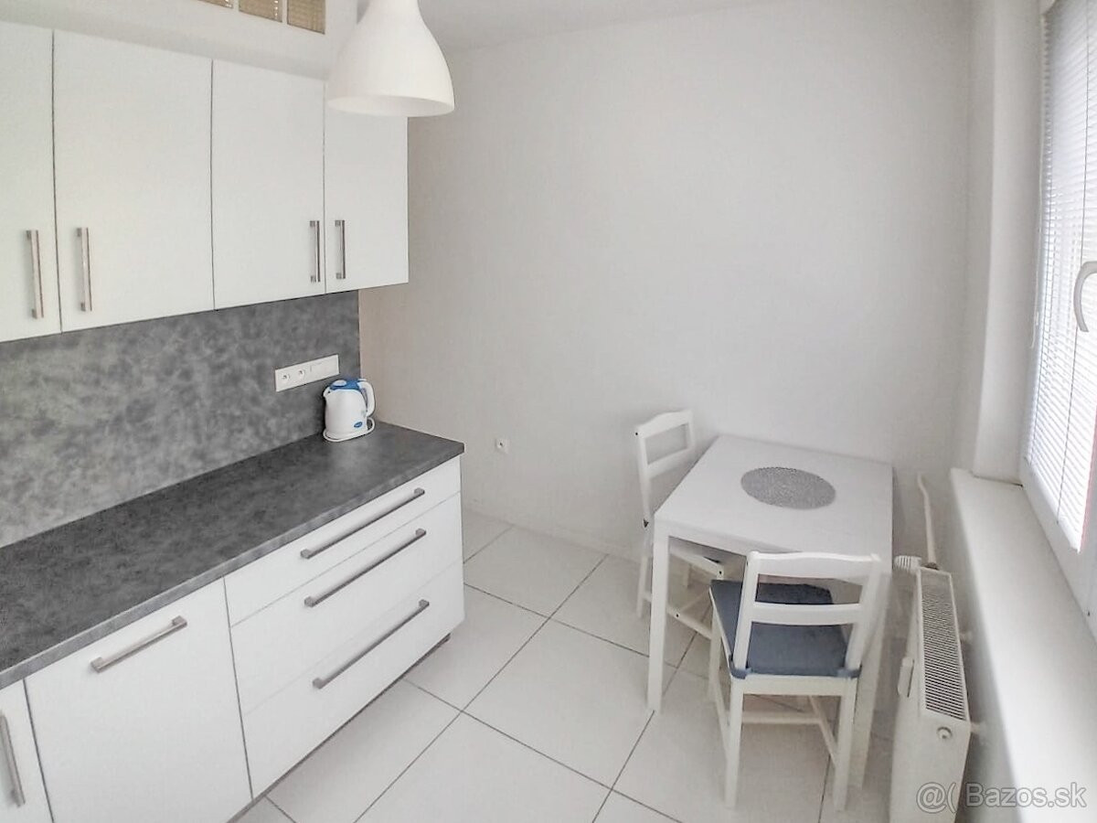 Byt pozostáva z kuchyne (vrátane spotrebičov), obývačky, spálne (vstup na loggiu), chodby, kúpeľne (sprchový kút a práčka) a samostatného WC. K dispozícii je aj pivnica.
