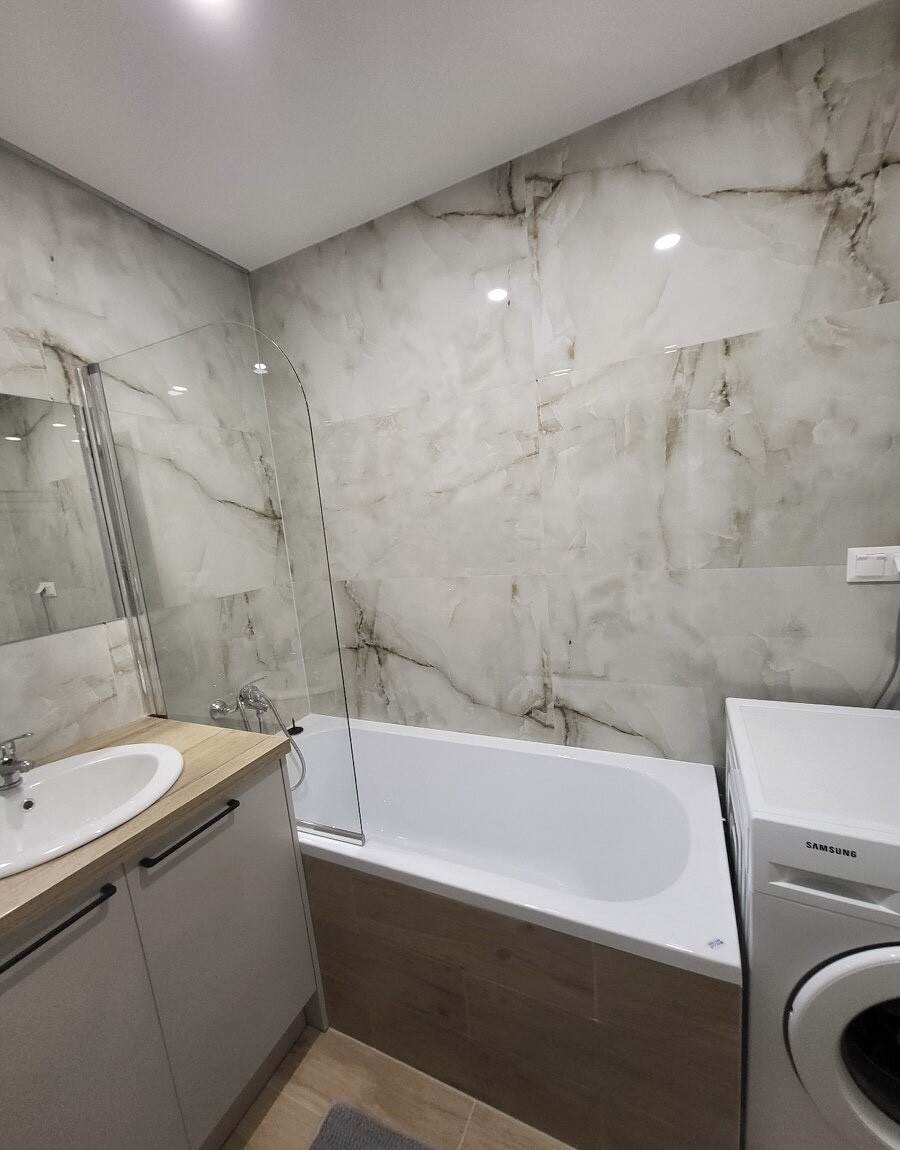 Byt má zasklený balkón, samostatnú kúpeľňu a WC. Súčasťou je moderná kuchyňa so spotrebičmi, práčka, nábytok, internet, malá pivnica a spoločná kočíkareň.