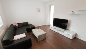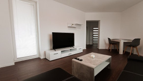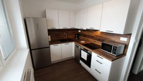 Byt je kompletne zariadený – nový nábytok aj spotrebiče (práčka, chladnička, rúra, varná doska, mikrovlnka, TV + až 2 vyhradené parkovacie miesta
