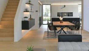 Denná časť: veľká obývacia izba s kuchyňou a jedálenským priestorom, s priamym vstupom do predzáhradky,