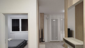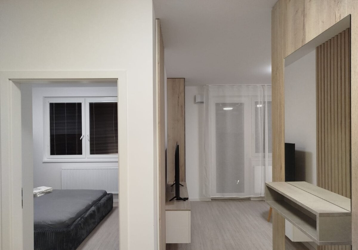 Byt je novučičký, dýcha čistotou, svetlom a pokojom. Priestor je prakticky a minimalisticky zariadený- každý detail tu má svoje miesto.