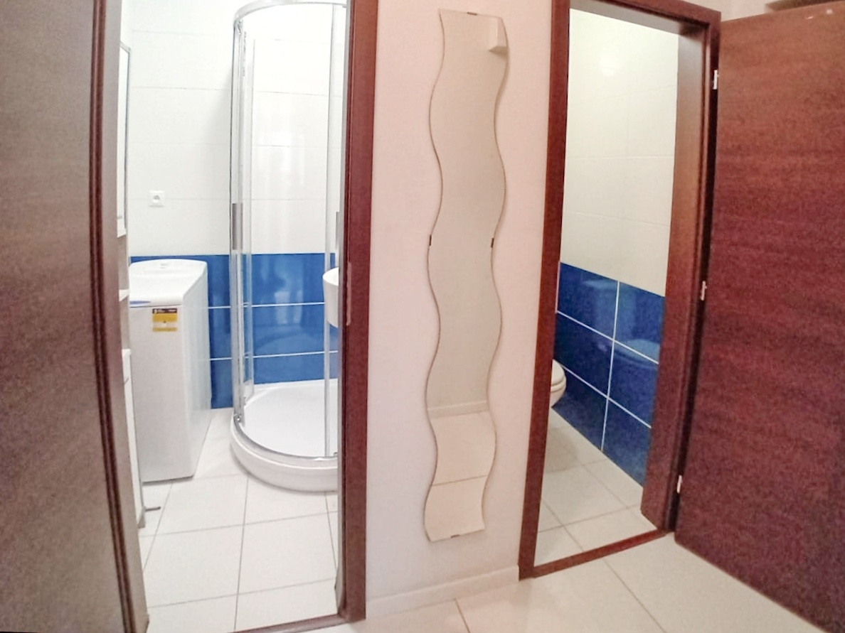 - spálňa (s lodžiou), obývacia izba, kuchyňa (vybavená spotrebičmi), kúpeľňa (sprchový kút, práčka), WC samostatne,
