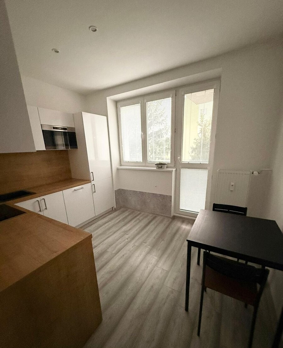 Byt je po kompletnej rekonštrukcií, stierky, plastové okná, podlahy, balkón, nová kuchynská linka,
