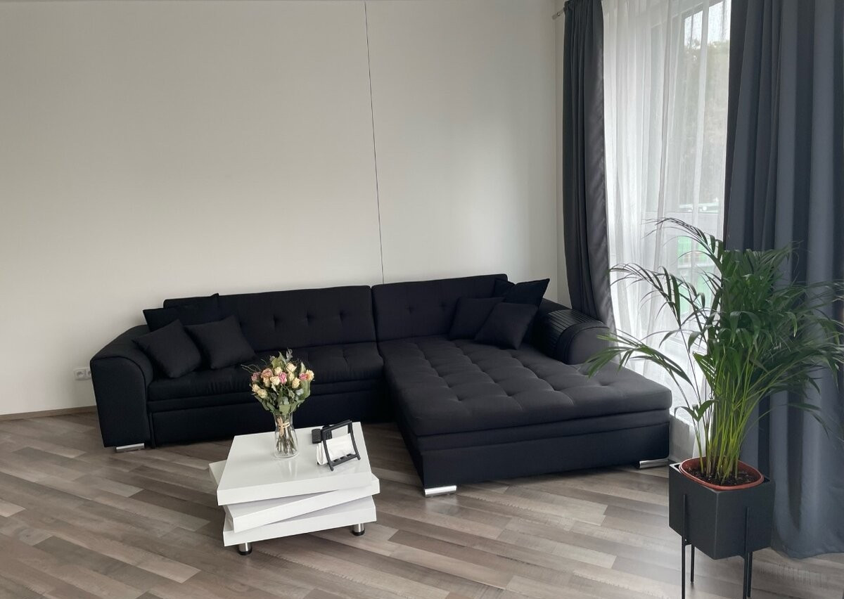 Byt je úple nový,ešte nebol obývaný,kompletne zariadený,vstup na terasu z každej obývacej izby.