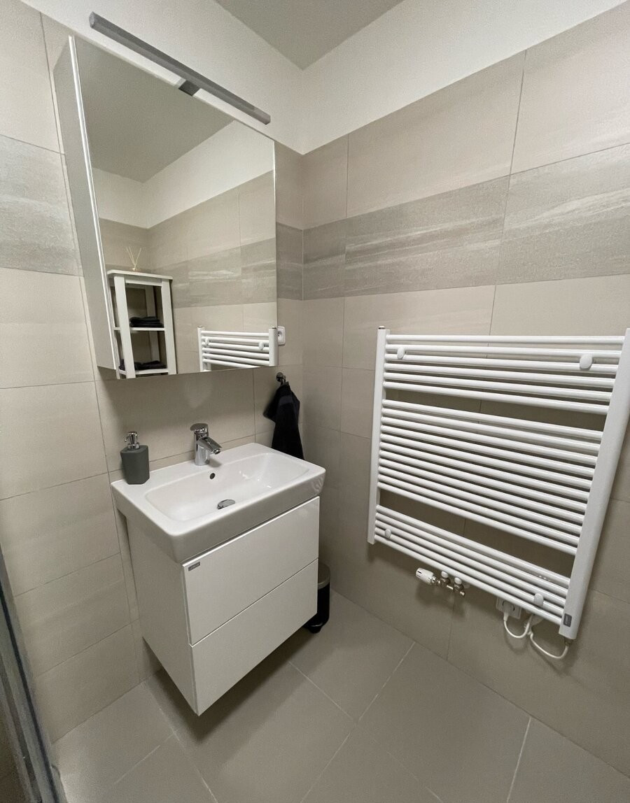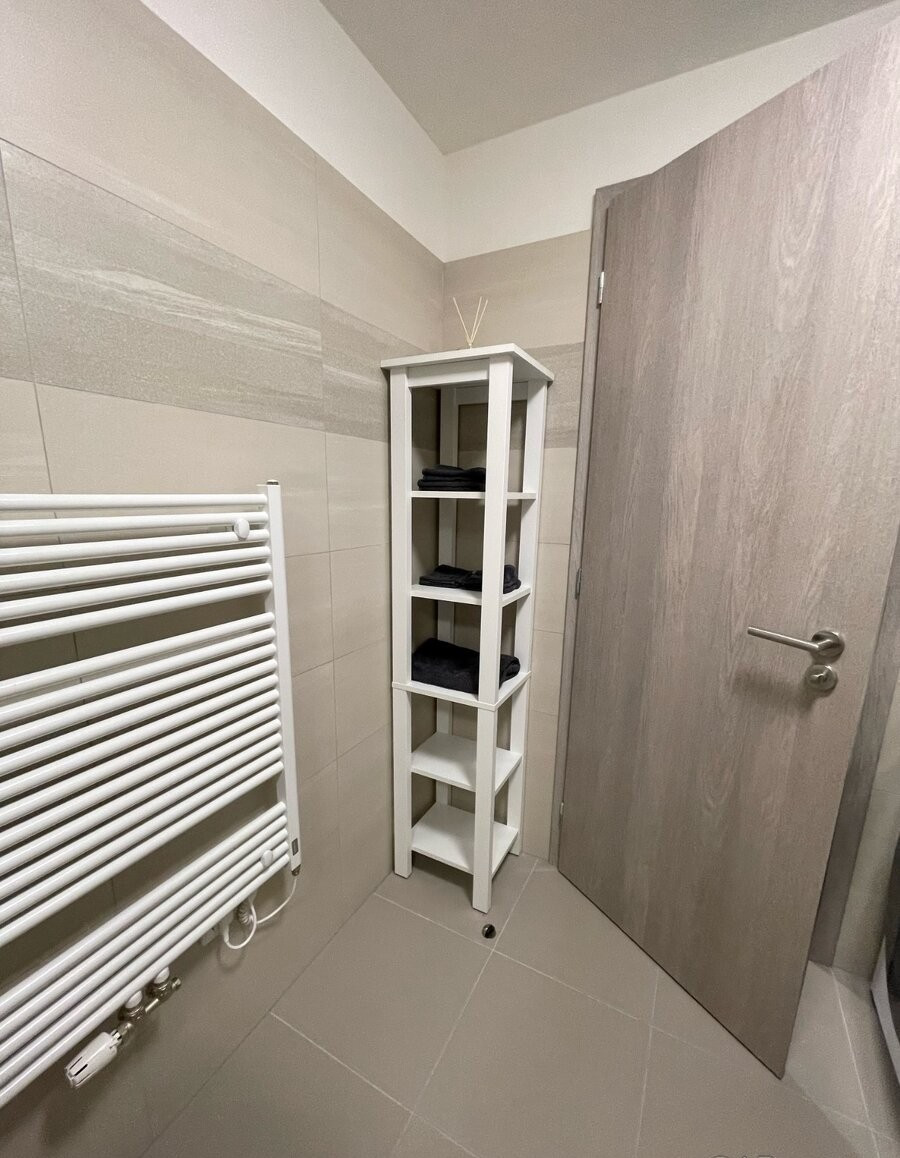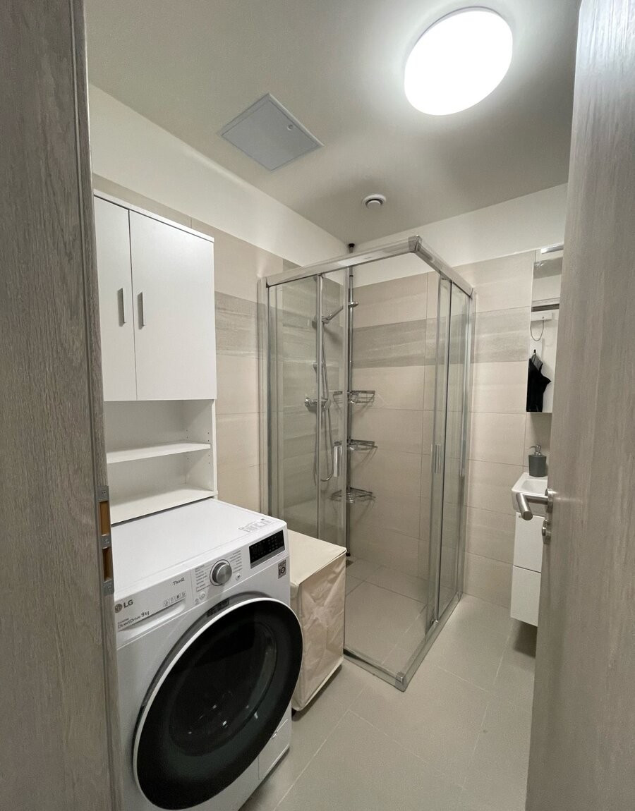 plastové okná,klimatizácia v každej izbe, v obývačke a izbách plávajúca podlaha, v každej izbe sú vyhotovené vstavané skrine na mieru,v kúpeľni vaňa,sprchový kút,zrkadlo,sušič uterákov,regál a umývadlo,v kuchyni sú všetky spotrebiče,jedálenský stôl so stoličkami a moderná kuchynská linka.