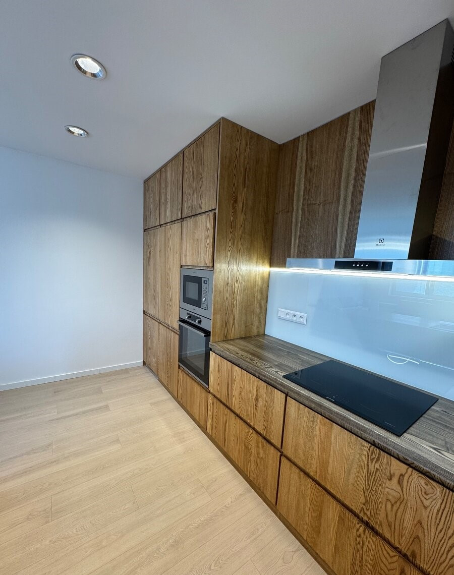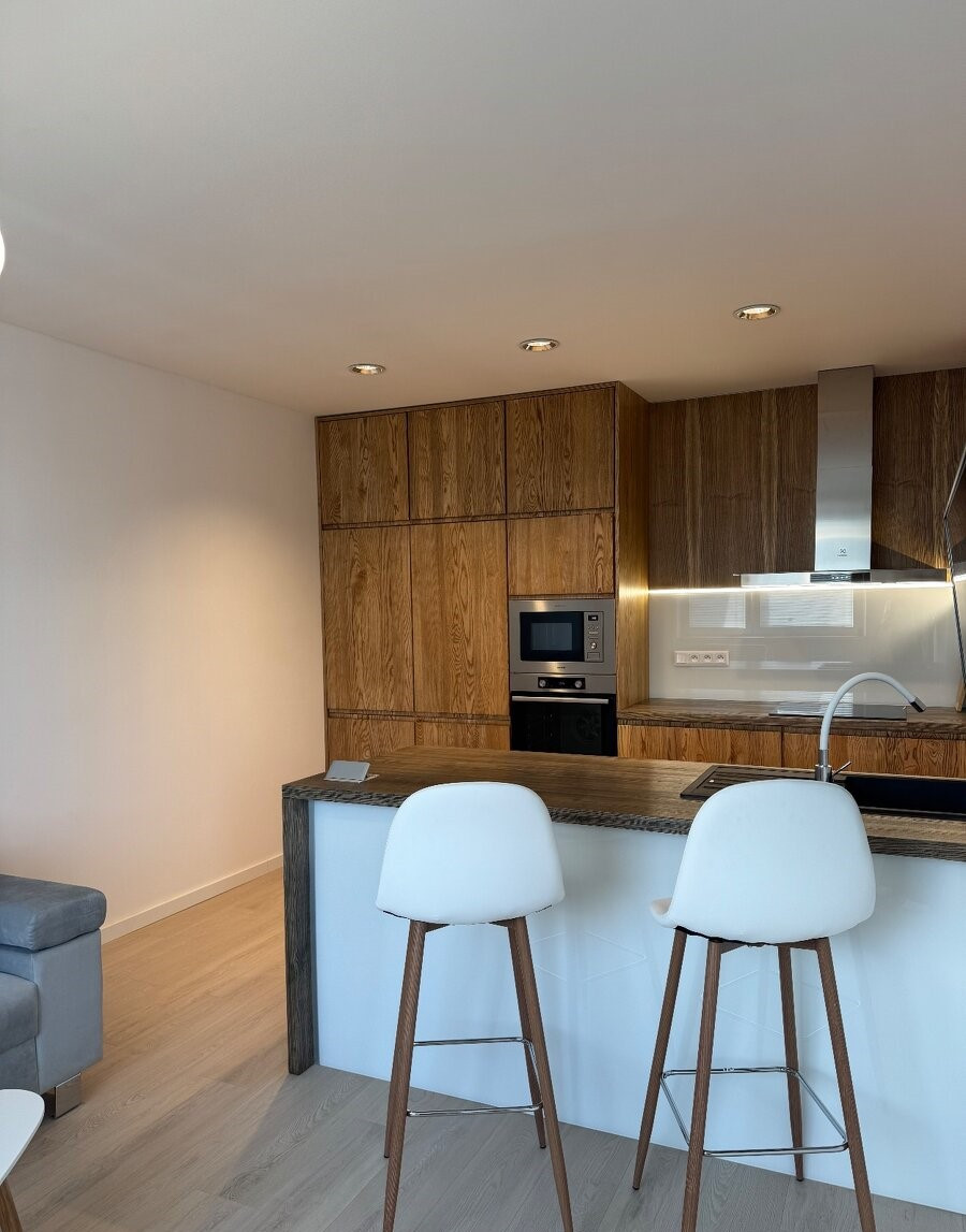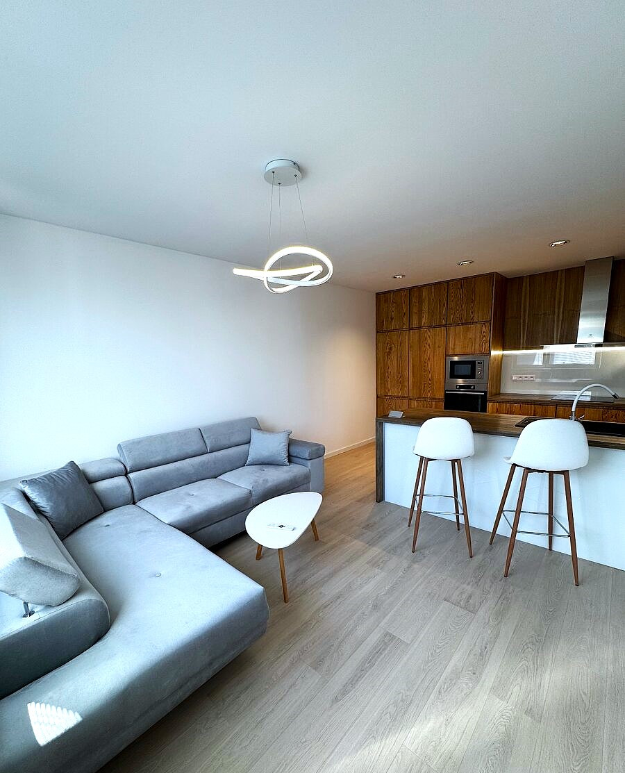 obývacia izba prepojená s plne vybavenou kuchyňou