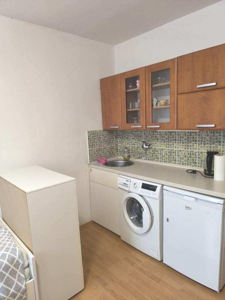 Garsonka je plne vybavená a zariadena , cena mesačného nájmu je 410e vrátane energií .